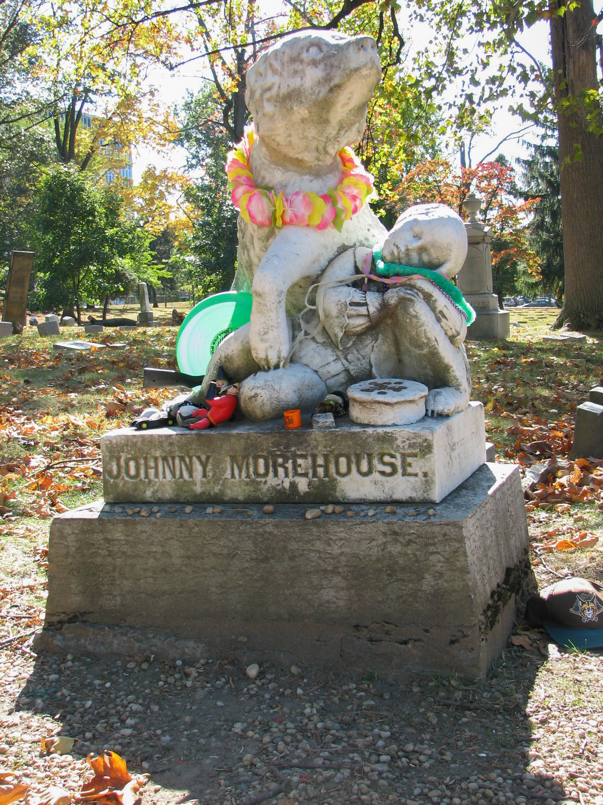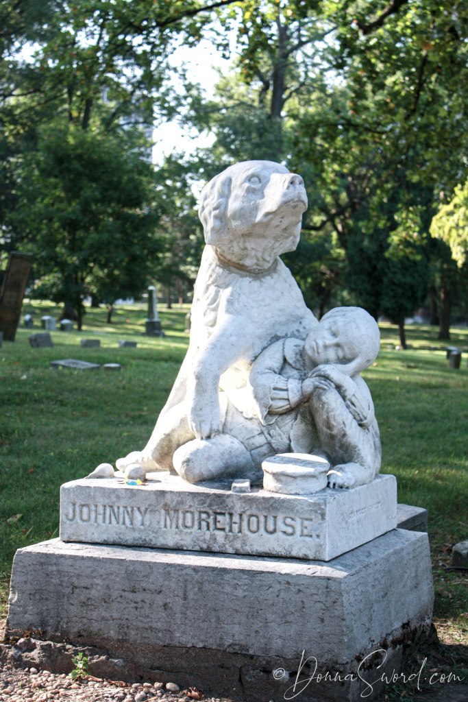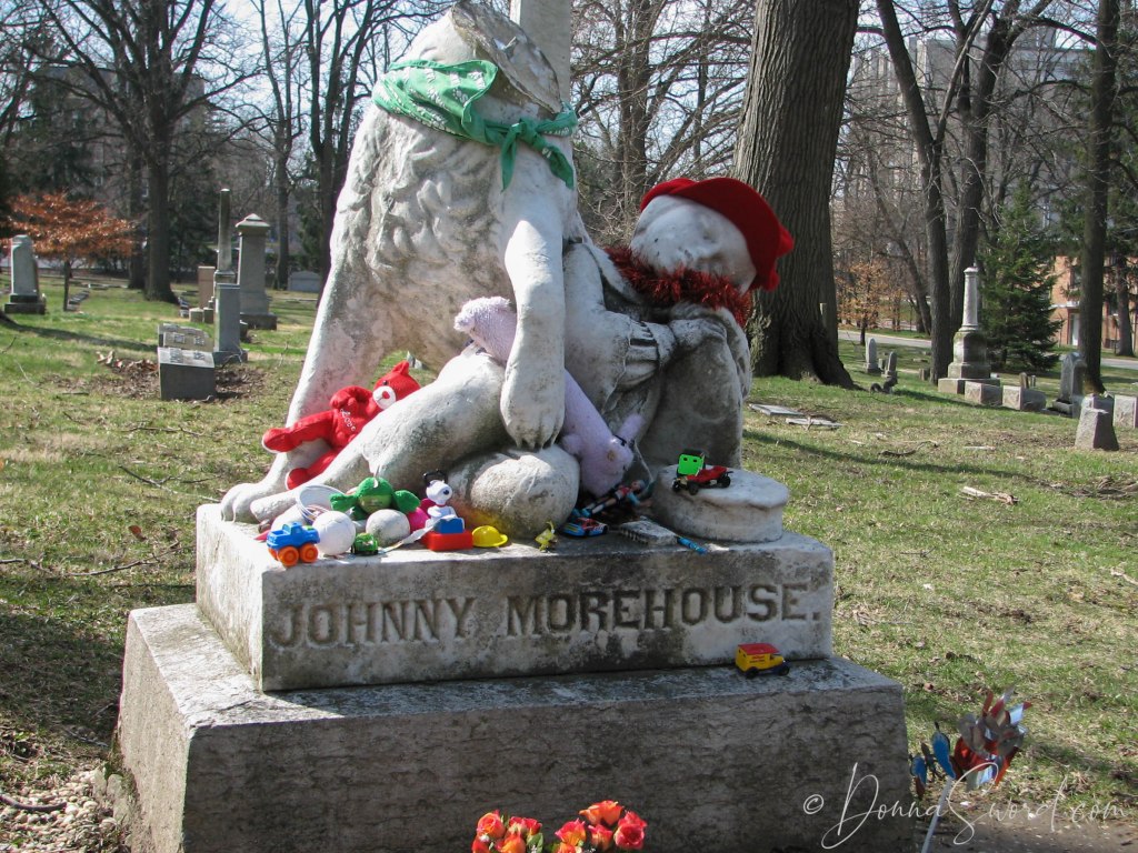 Woodland Cemetery states this is their most visited gravesite – and the most decorated. The site changes daily as families come by to pay their respects to this lost boy by leaving toys, trinkets and clothing. These items are later collected and donated to charitable organizations.